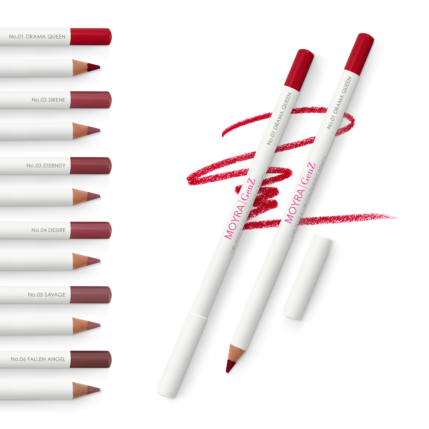 Available in six stunning shades, these lip pencils are gorgeous on their own but can also be perfectly paired with Moyra GenZ Liquid Lip-sticks and Lip Glosses for an even more refined look. Highlight the beauty of your lips with Moyra GenZ Lip Pencils and achieve a flawless finish!
